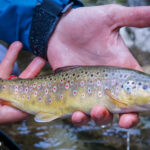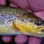 - Brown trout caught while fly fishing