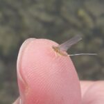 In the year 2016, tiny dry flies like an olive dun size 18 proofed to be very successful. Other fishing mates enjoyed great days by using rather flashy looking dries with pink CDC. Despite fishing only dry flies, I often fish a tandem rig with a tiny gold bead nymph. However, sometimes none of these work. This is the moment to start experimenting and playing against the common conventions. During one particular fishing session, the graylings were not interested in small tiny dries or nymphs, but slurped a huge jig nymph size 12. Moreover, I swung this jig nymph with high speed across the river. What a surprise!