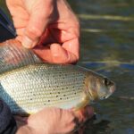 The grayling is a freshwater fish in the family of salmon, which can be easily distinguished by its adipose fin. The males have a huge colourful dorsal fin, which gives them the German name “Fahnenträger” (flag bearer). This dorsal fin gives them plenty of power while fighting in rapid water. They feed on small nymphs, larvae as well as on emerging insects and flies on the surface. Thus, grayling are a perfect target fish for fly fishing. Nevertheless, I witnessed some time ago that a grayling viciously attacked even a spinner bait, which was very surprising. In particular, because of their tiny mouth. Their tiny mouth might assumably be the reason for many missed takes while fly fishing for grayling. The ratio of missed takes when fly fishing for grayling exceeds the ratio while targeting trout by far.