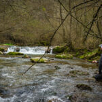 After fly fishing upstream with nymphs and dry flies for 2 hours we recognized another fisherman. Similar to us he was not successful yet. However, in contrast to us he used spinning gear. We wished good luck and continued upstream. It was only at the second pool after this unforeseen meeting, that André hooked and lost a fish after a superb cast between and under several branches of a tree. Instantly our spirits were high again.