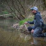 In the morning after fishing unsuccessfully for a while I packed my camp, cleaned the area from some waste and left for the meeting point. I arrived at the bridge a few minutes to early and decided to explore the river already. The small stream was very promising and after practising casting for a few minutes, a car stopped nearby.