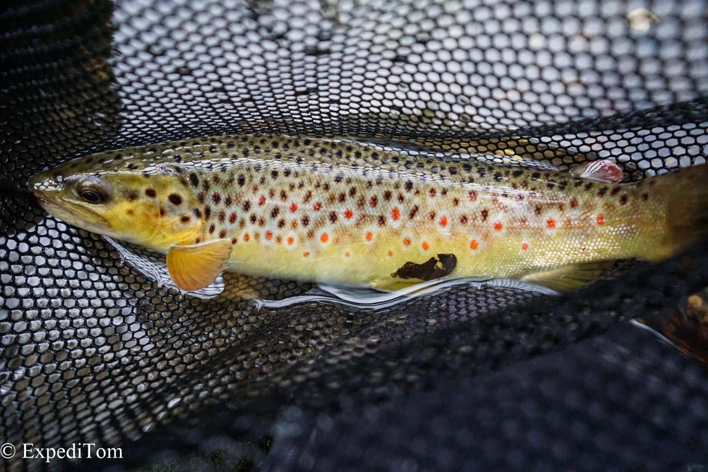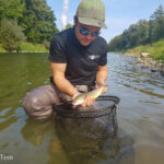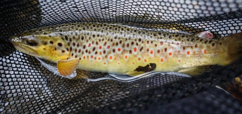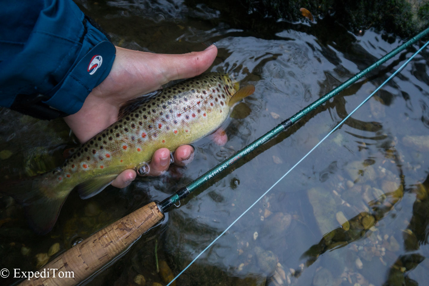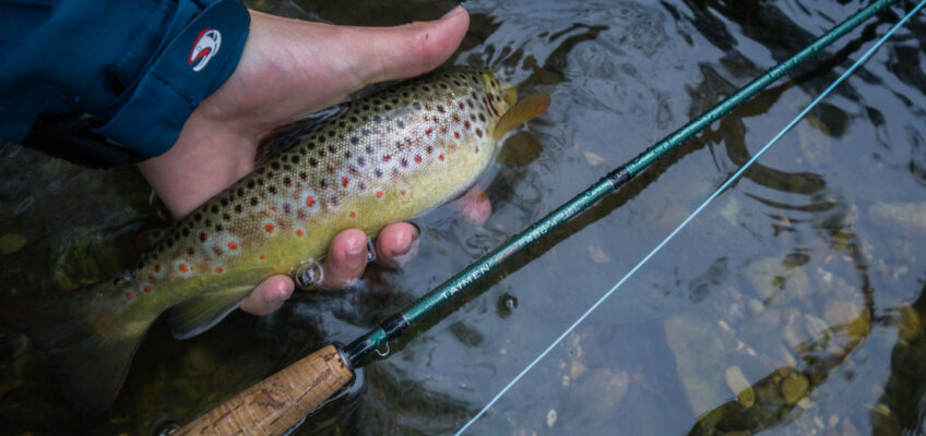 Somehow it felt all wrong but the water level was alright. Hence, we continued upstream and covered lots of water. When we eventually approached another deep riffle, André finally caught a fish. After he had caught 2 trout in total, I managed to land one too.