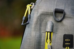 Regarding the waterproofness, the sling pack’s main compartment is absolutely tight. No rain has entered while fishing, neither did salt water while swimming in the sea. However, as much as I trust waterproof bags, make sure you squeeze the bag before entering the water in order to test for any leaks where air can escape.