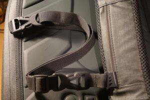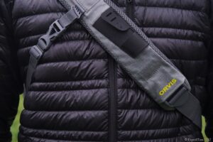 The first impression of the Orvis waterproof sling pack was extremely convincing. The material feels strong and durable with its 500D nylon. All seams are taped and I could not find any imperfection on the entire bag. The water bottle holder at the bottom has an elastic security cord to fasten it securely. This offers peace of mind that I will not accidentally lose the bottle. The holder is not for 1.5 litre bottles but works fine with up to 1.0 litre.