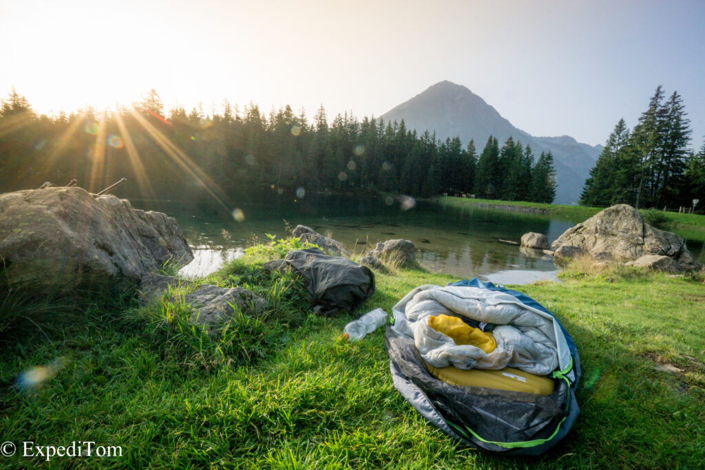 All outer shells do the job and are chosen according to space and weight limitations. Whereas on a solo mission I opt for the bivouac, as soon as I need more space to cover gear from rain, I tend to the tent. In Summer, I only use the SeatoSummit sleeping bag (lower limit 2°) or in hotter climes only the silk inlet. Once upon a time in Thailand, I even put the Thermarest sleeping pad aside and lay on the ground. It was just too hot and the insulating pad did not help to cool down!