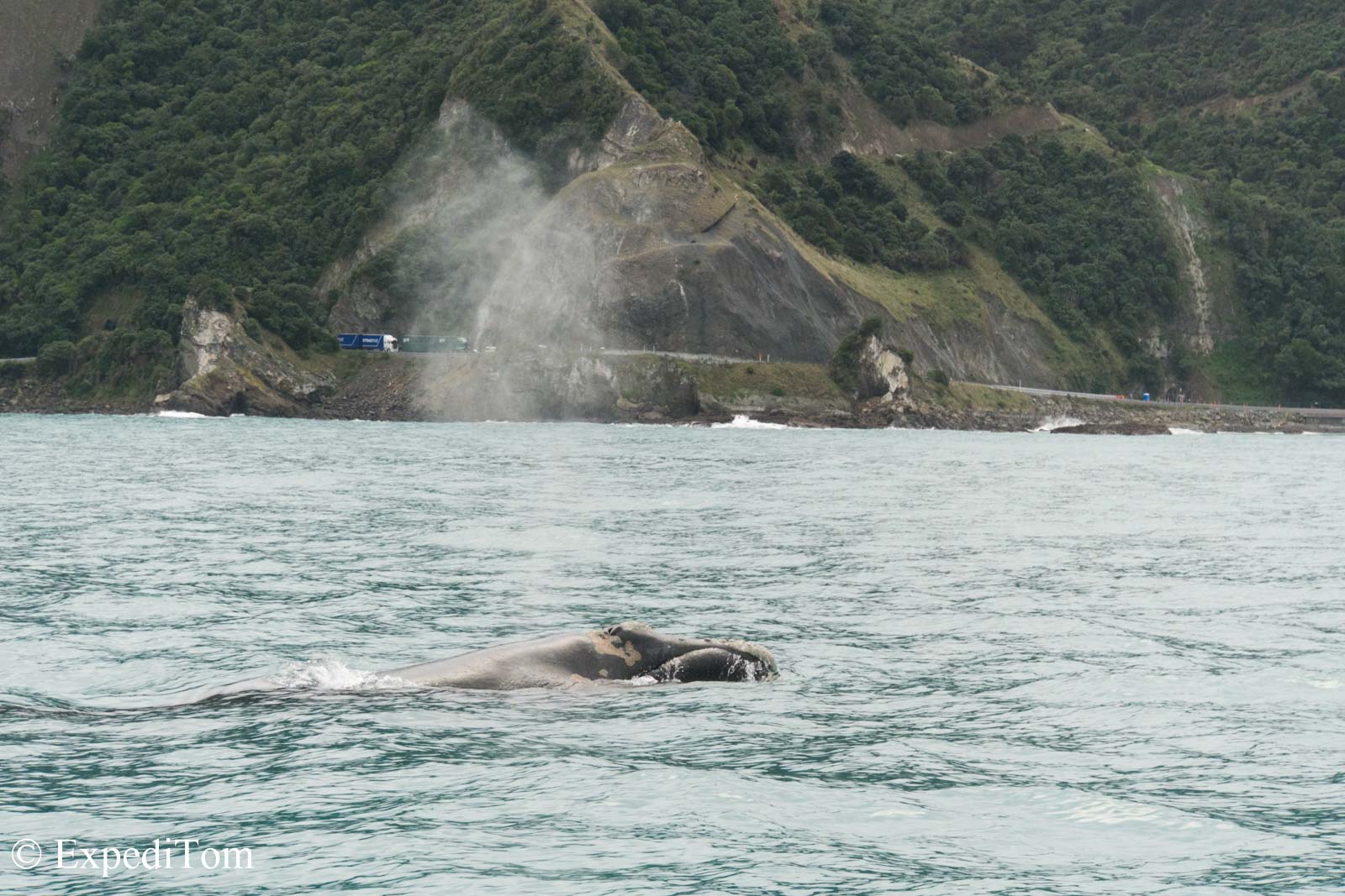 After a brief stay in Christchurch, I proceeded quickly north towards Kaikoura and almost ran out of fuel. Kaikoura is famous for whale watching and I have not done anything like this before. On my last visit to NZ, I had only a 30 minutes break there. So, I took the chance even though I was similarly indecisive whether it is worth the expense like for Stewart Island. Additionally, I get sea-sick really fast, because Switzerland is pretty land-locked. The sea was rough and I took sea-sickness pills. Nonetheless, I felt unwell but kept all liquids in me. As soon as they spotted the first sperm whale, all worries were gone.