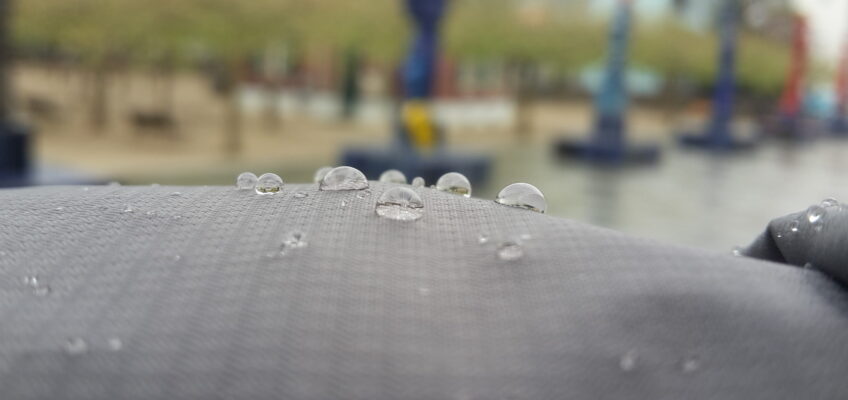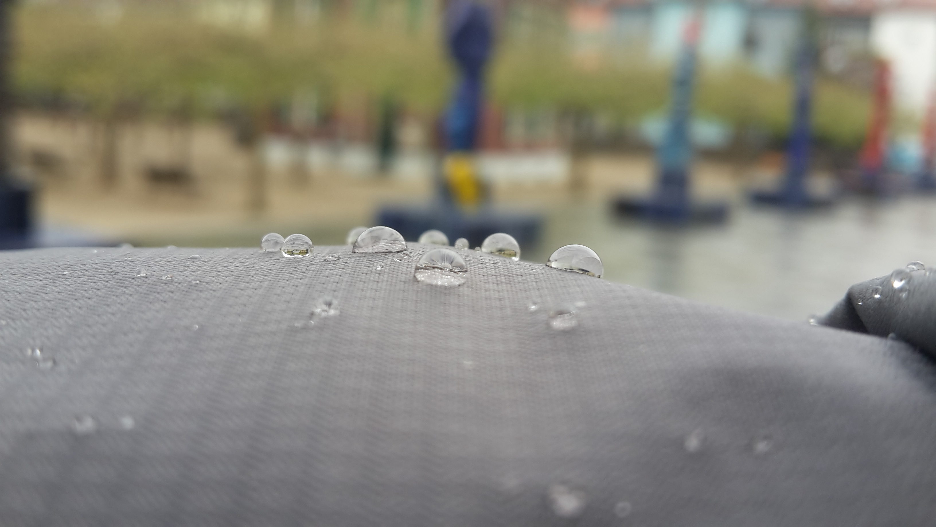 The fabric is waterproof and breathable nylon and so far, the jacket has excelled in every downpour. Furthermore, it became one of my favourite fishing items because it folds down very small and is very convenient for all my travels.